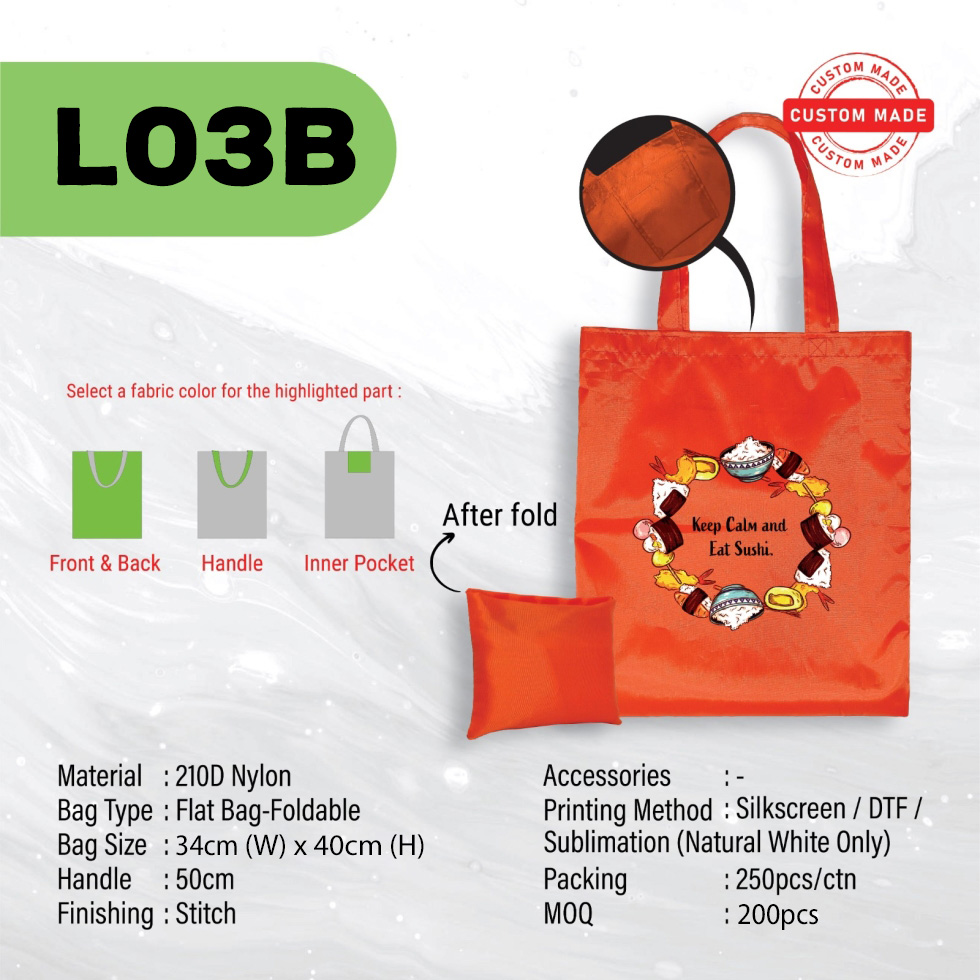 Carry in style with the A3 size Foldable Nylon Bag (L03A). Lightweight, durable, and spacious, this foldable bag is perfect for everyday use or travel. Compact when folded, yet roomy enough for all your essentials. Ideal for eco-conscious shoppers on the go!