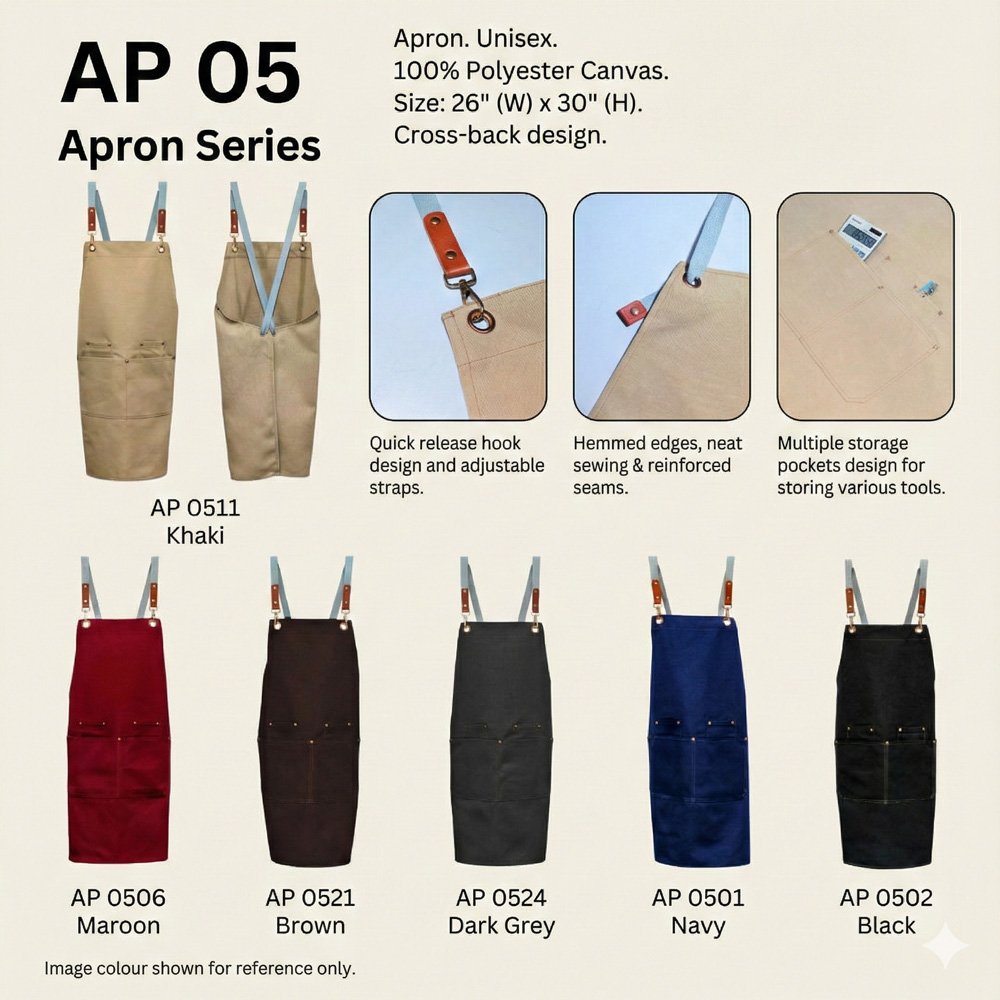 Enjoy comfort and durability with our 100% polyester canvas apron. Perfect for cooking, baking, or crafting, this apron is lightweight, easy to clean, and built to last through all your creative adventures.